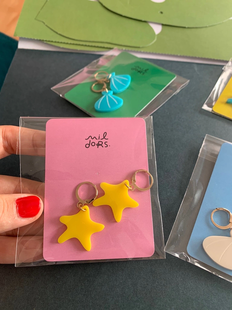 Aros con forma de estrella. Color amarillo cítric o turquesa